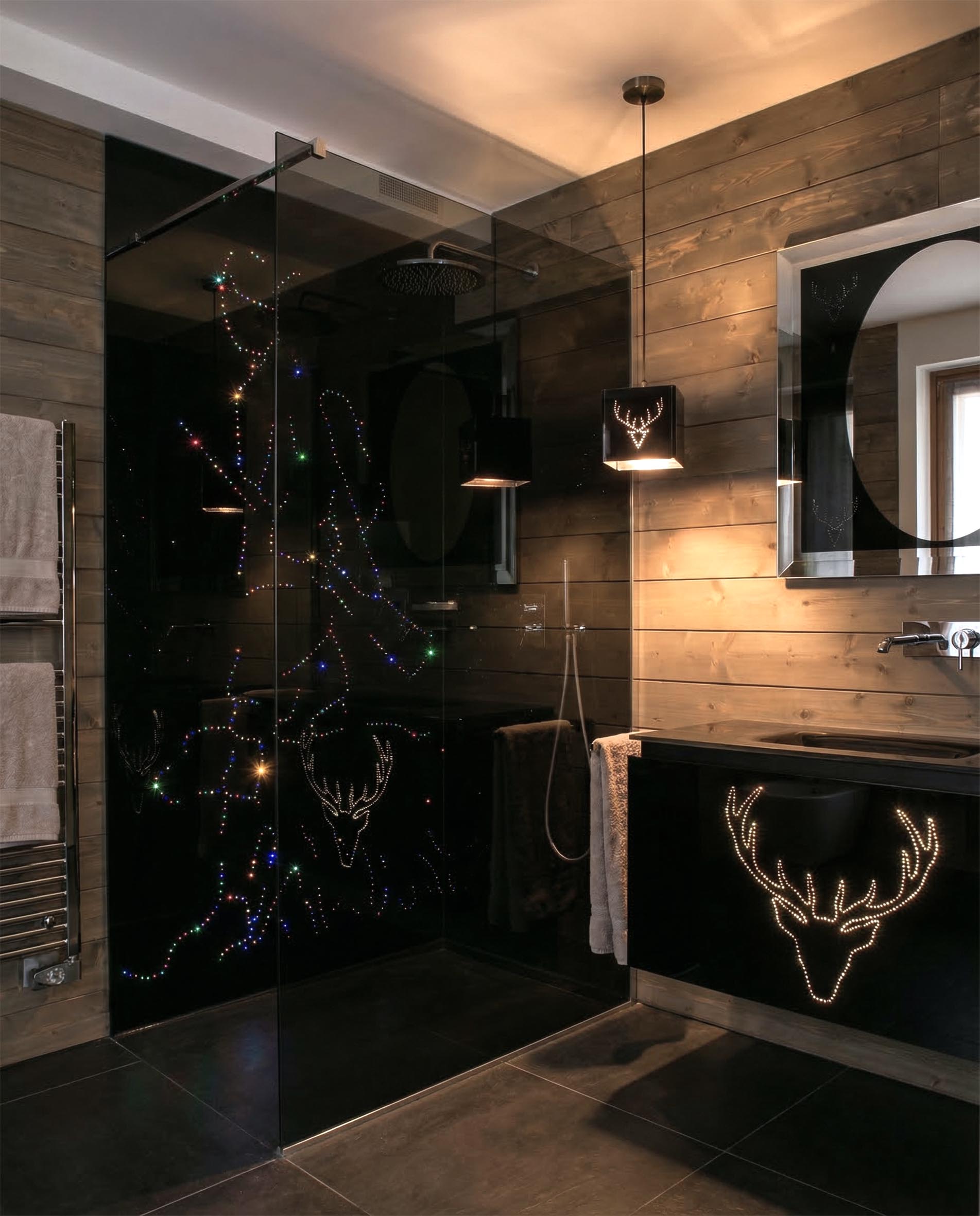 Metall im Glas – ein interessantes Gestaltungselement – sinnvoll im Badbereich einsetzen zu können, funktioniert nur in unserem Produkt als Verbundglas Element